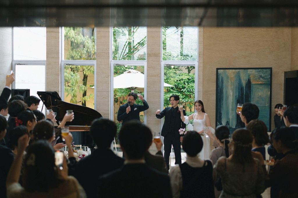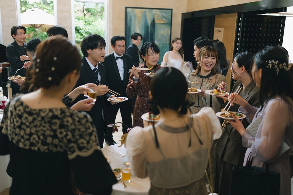 1部ではご親族を中心に開催されましたが、2部ではお友達をたくさんお招きして立食partyを。