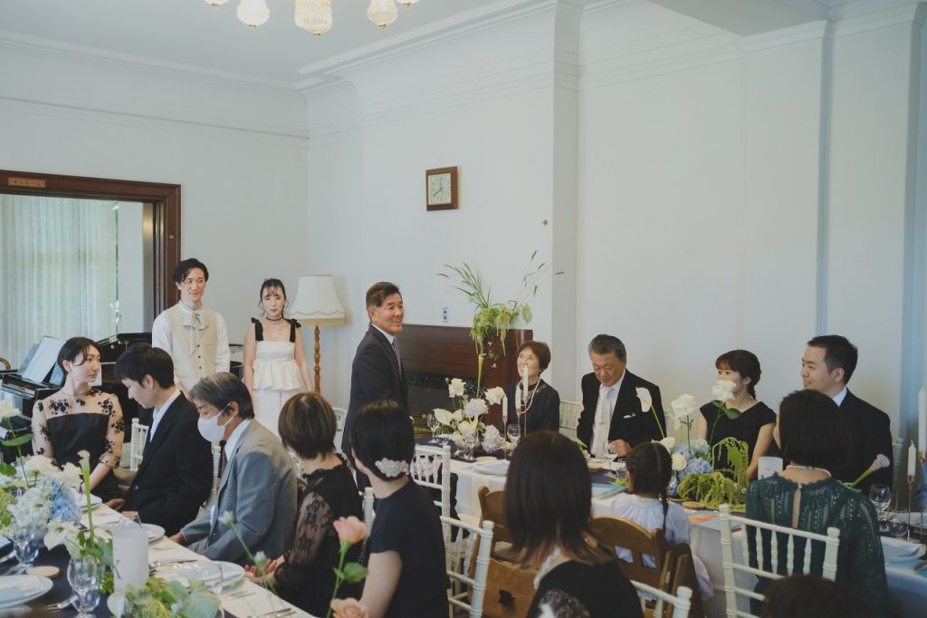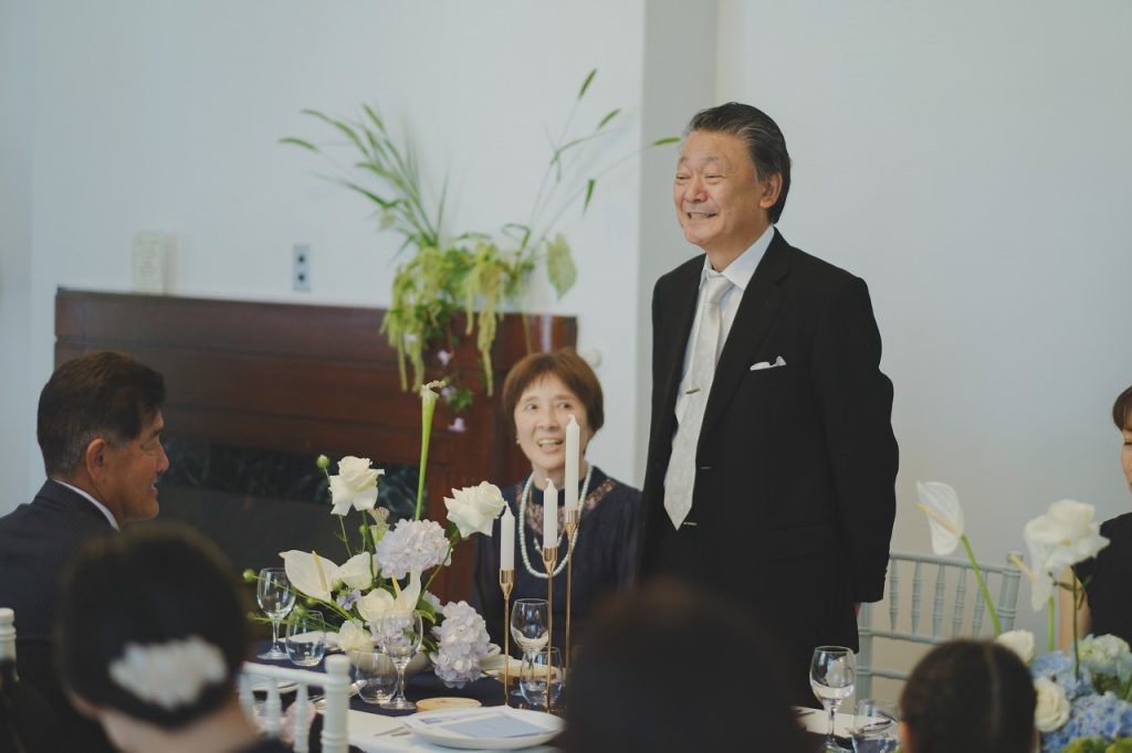 ご親族も楽しんでいただく場でもあったので、両家のお父様に代表してお話をしてもらって。